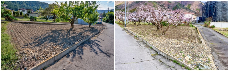 小さめの畑にも杏の木が2本あります♪(写真右側が春の景色)